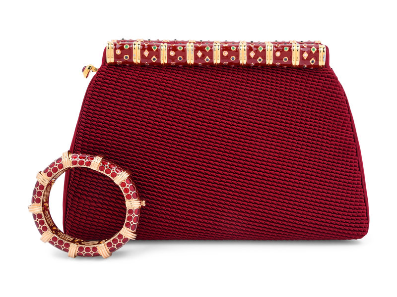 Judith Leiber Double Pleated Silk Bag and Enameled Bangle