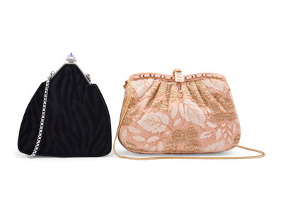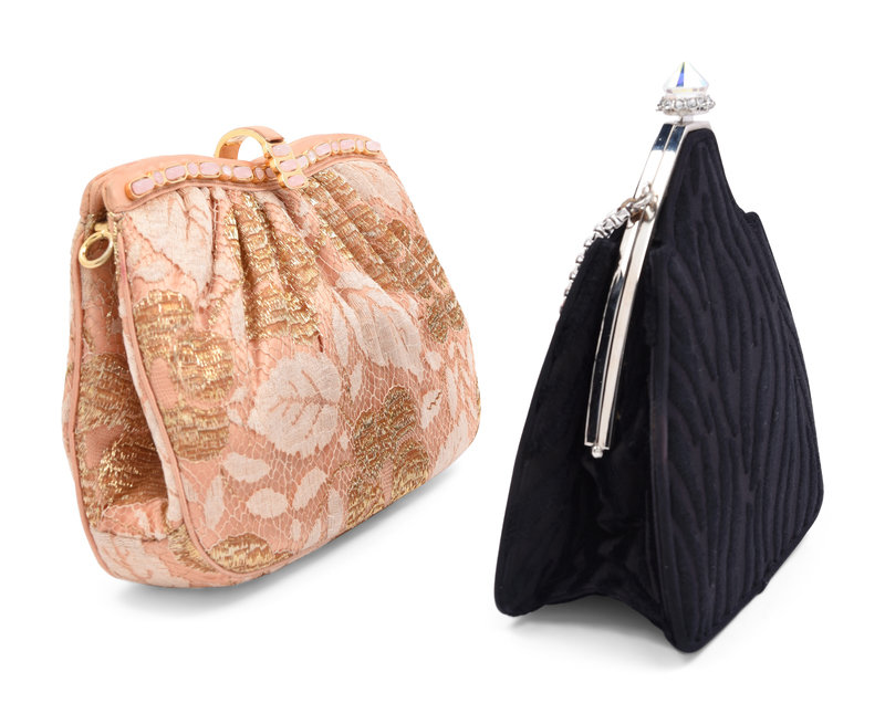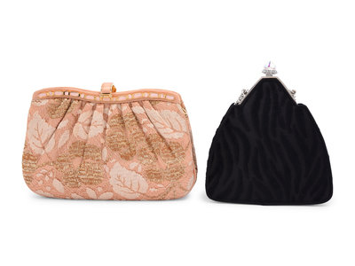 Two Judith Leiber Shoulder Bags: One Velvet and One Satin with Lace
