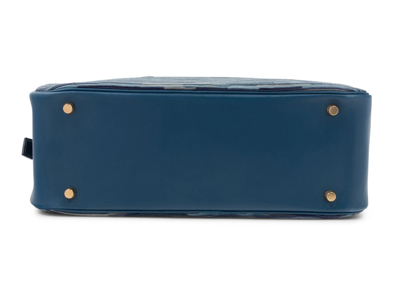 Vibrato leather Plume bag in variegated blues trimmed in blue thalassa leather, dual top leather handles, gold-tone hardware, and top zipper closure. Found with original sales tag, listed price: $7,000.00.