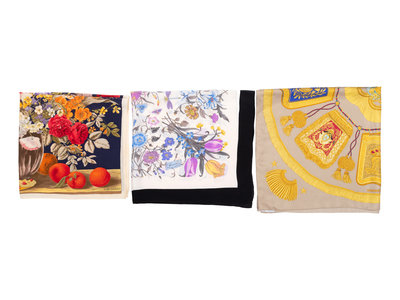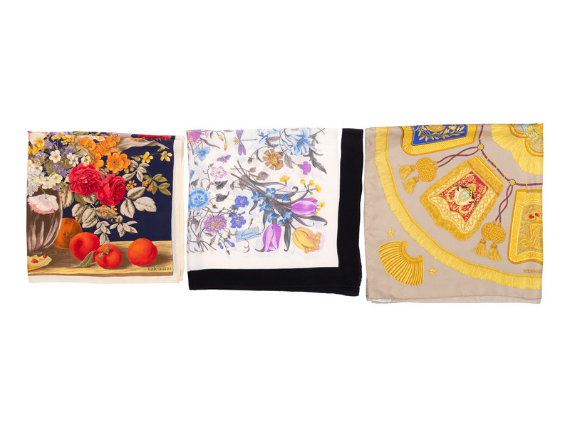 Three Designer Scarves: One Hermès, One Gucci, and One Valentino
