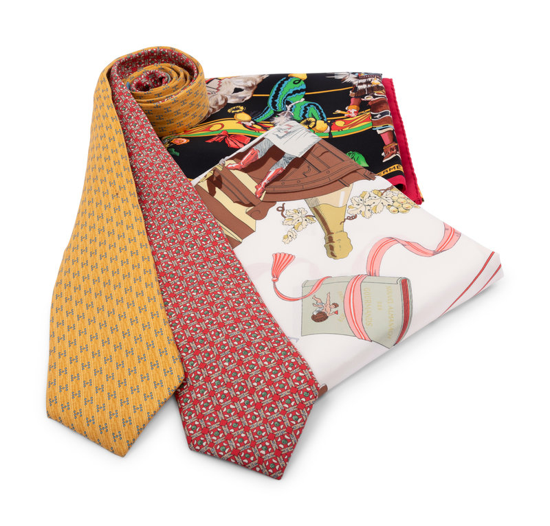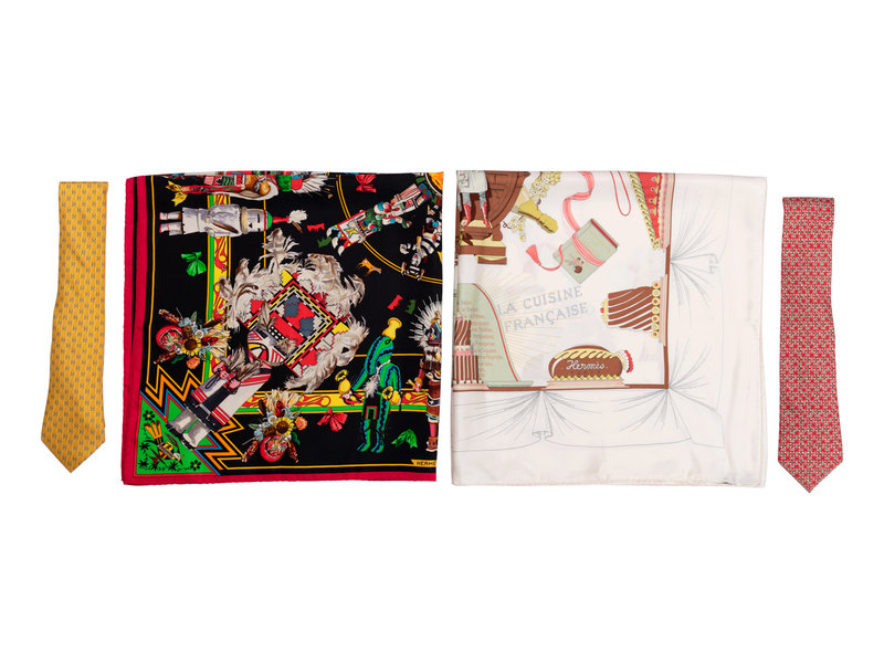 Four Hermès Items: Two 90cm Scarves and Two Ties