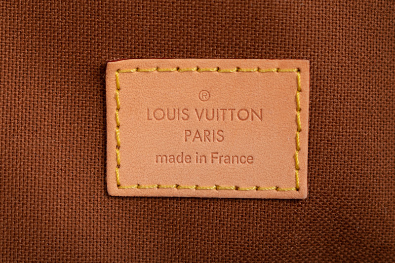 Louis Vuitton Eloe 60 Rolling Duffel Bag in Monogram canvas, trimmed in Vachetta leather, gold-tone hardware, and rubber wheels with retractable metal handle.