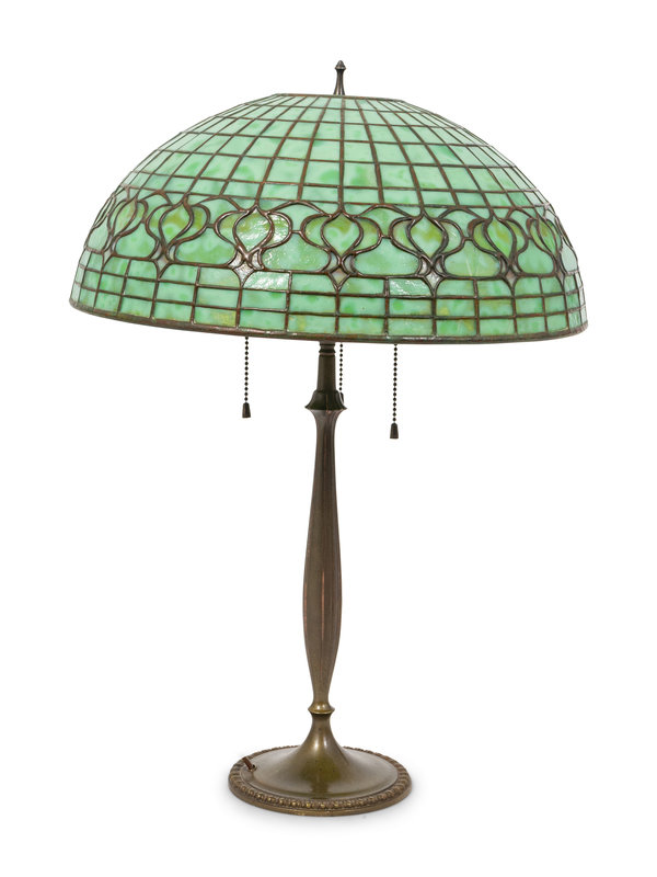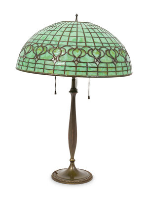 A Tiffany Studios Favrile Glass and Bronze Pomegranate Lamp