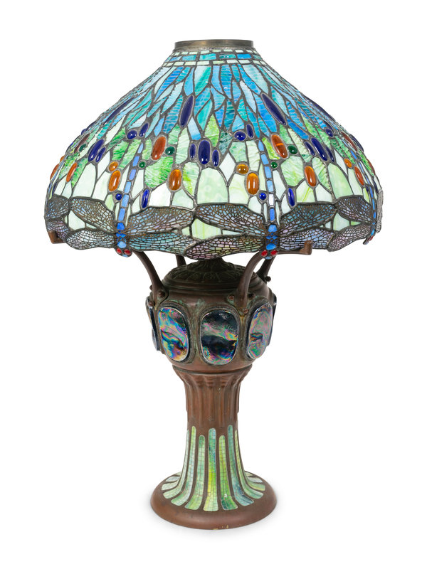 A Tiffany Style Drophead Dragonfly Bronze Lamp