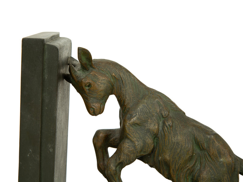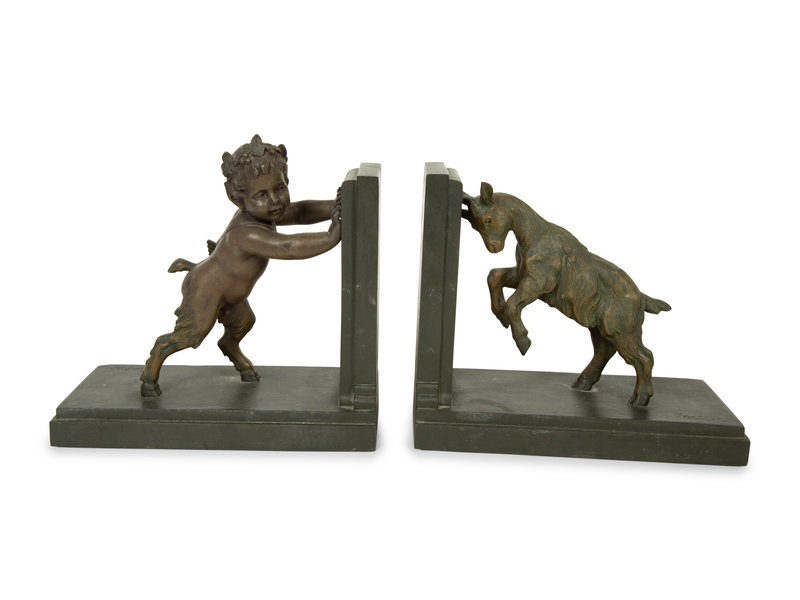 A Pair of Art Deco Signed Carlier Bronze Satyr & Goat Bookends