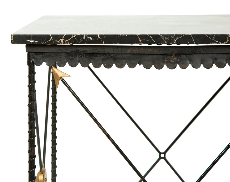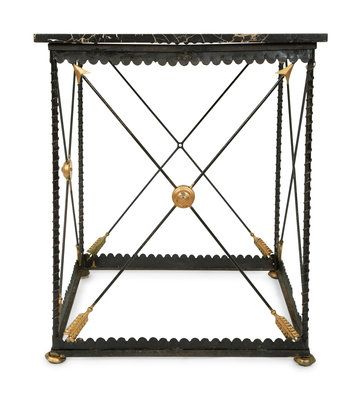 A Maison Jansen Style Wrought Iron and Marble Top Side Table