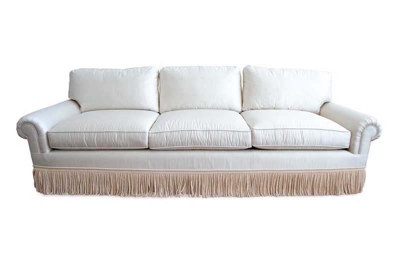 A Three Cushion Linen Silk Upholstered Sofa