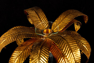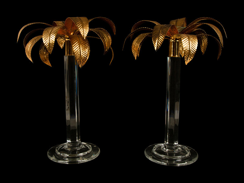 A Pair of William Yeoward Glass and Gilt Metal Palm Tree Candlesticks