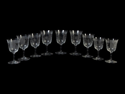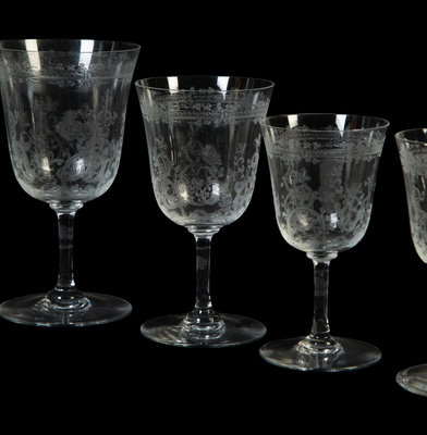 comprising 11 water goblets, 11 red wines and 12 white wines.
