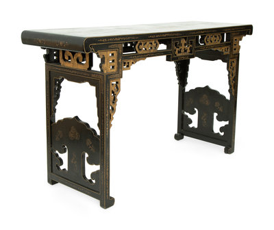 A Chinese Black and Gilt Lacquer Console Table
