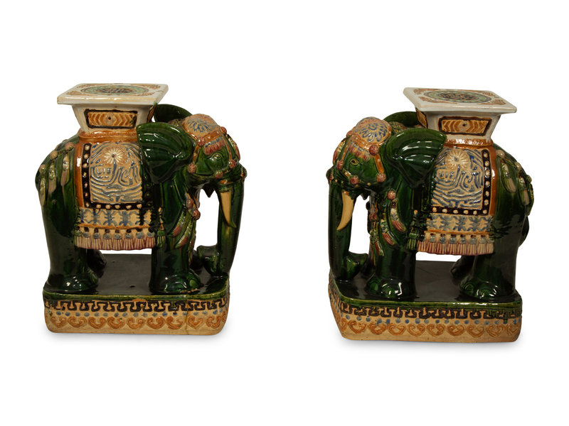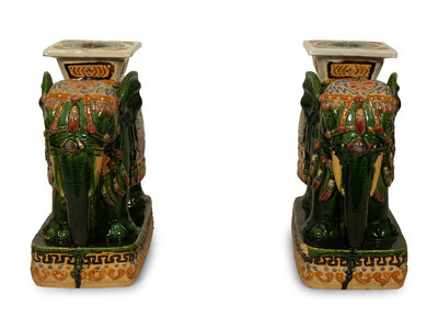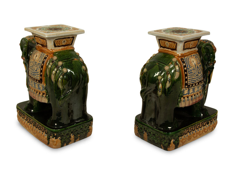 A Pair of Chinese Glazed Ceramic Elephant Garden Seats