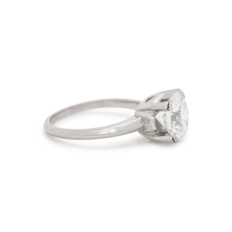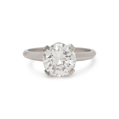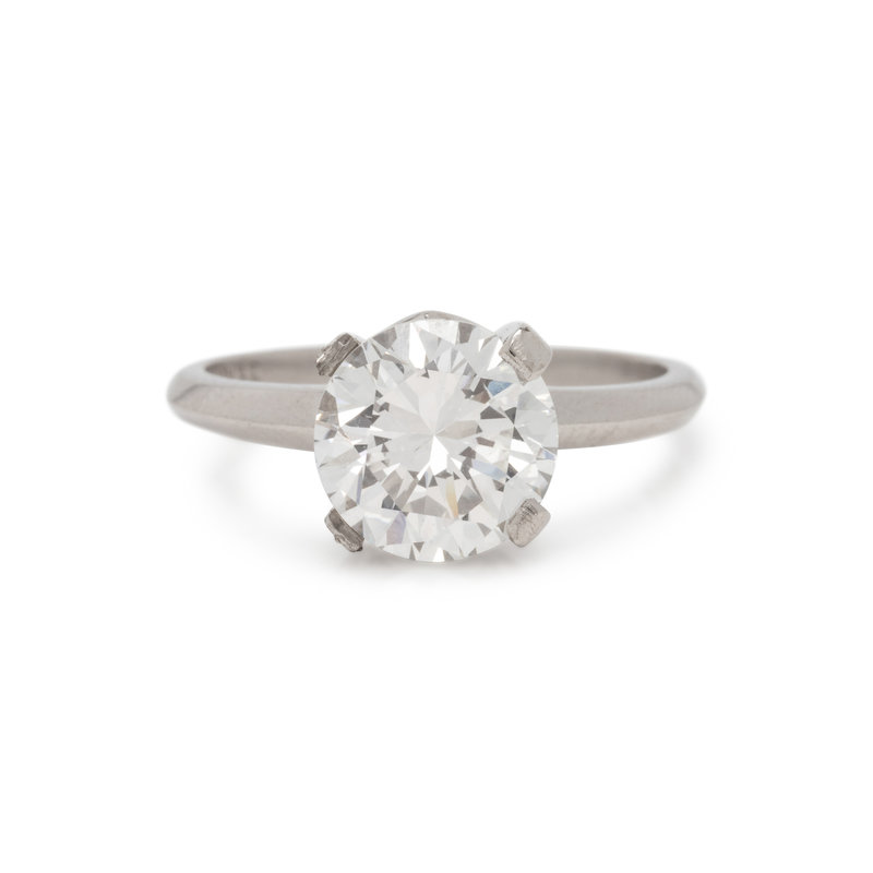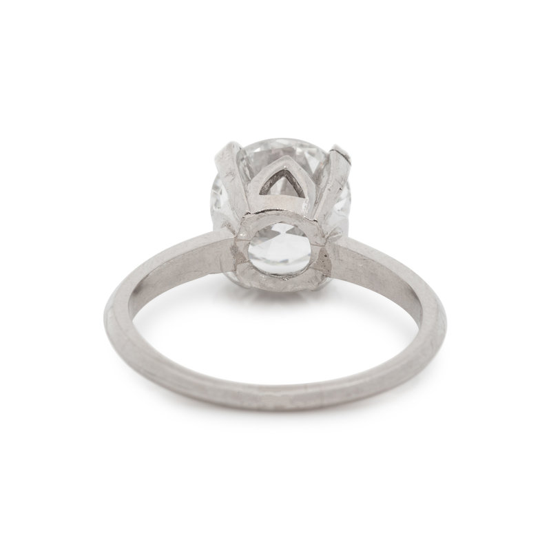 Containing one round brilliant cut diamond weighing 3.02 carats. Mounted in platinum. Ring size 8.