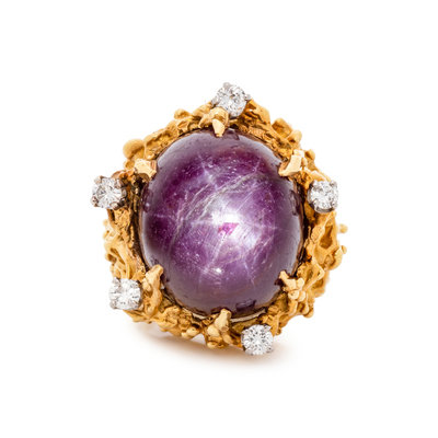 BARBARA ANTON, BRUTALIST, STAR RUBY AND DIAMOND RING