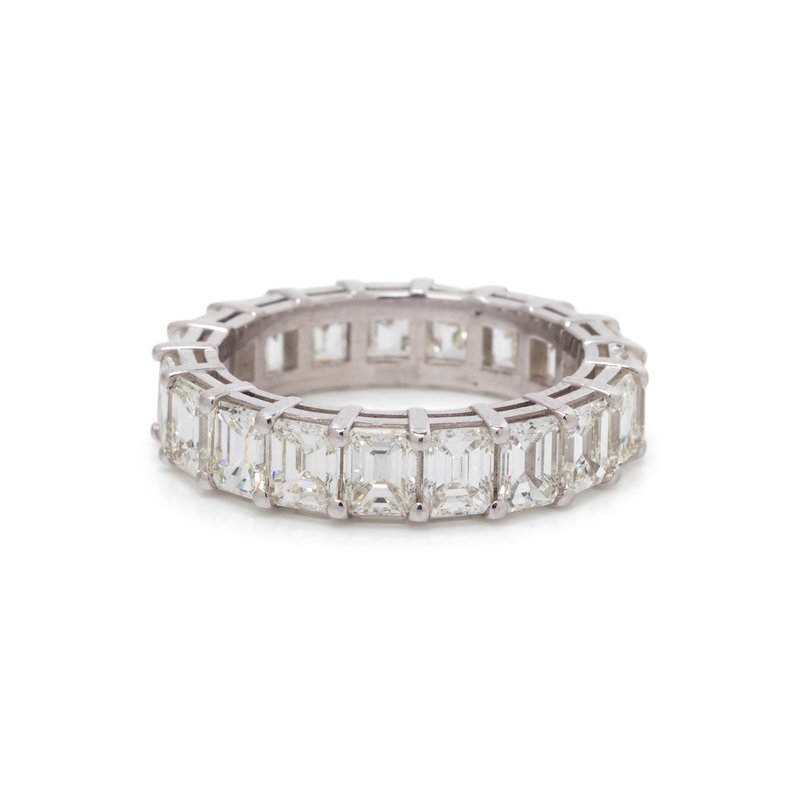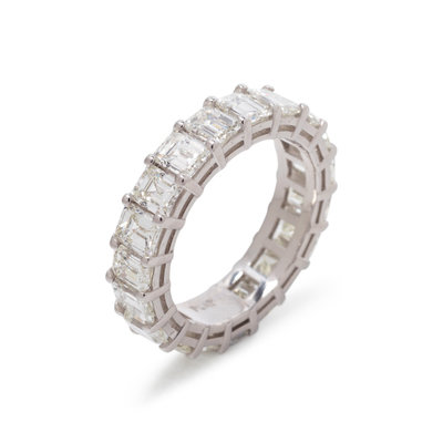 Containing 19 emerald cut diamonds weighing approximately 6.25 carats total. Mounted in platinum. Ring size 6 1/2.