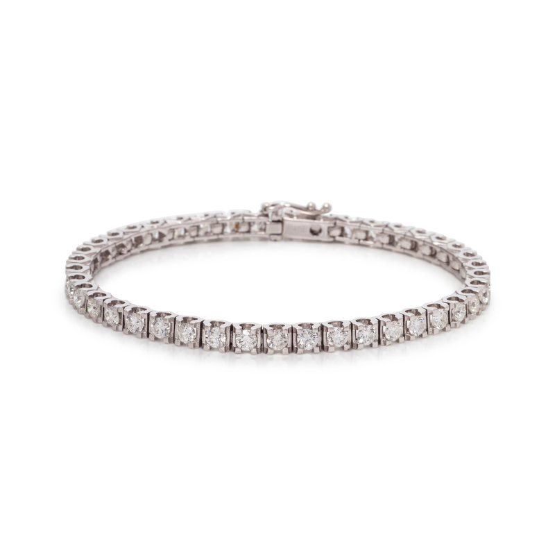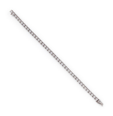 Containing 41 round brilliant cut diamonds weighing approximately 6.15 carats total. Mounted in white gold. 7 inches long.