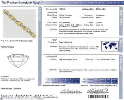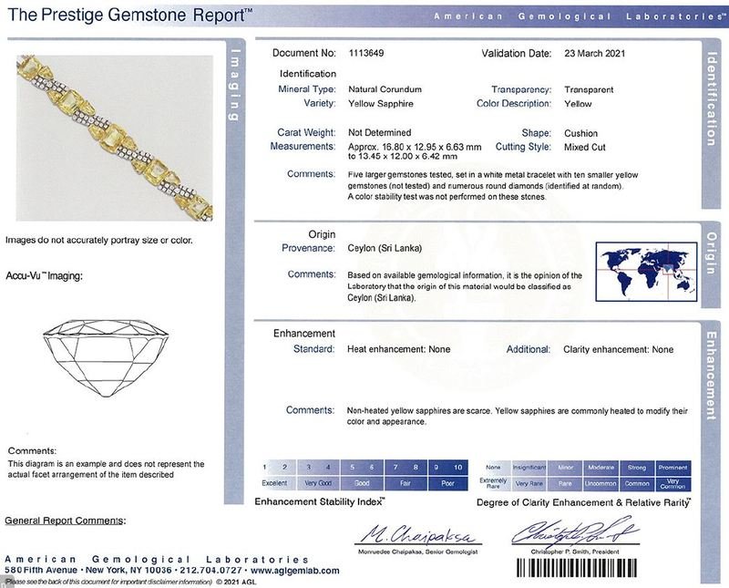 AGL, 2021, Report No. 1113649, Natural Corundum, Yellow Sapphire, Ceylon (Sri Lanka), No heat