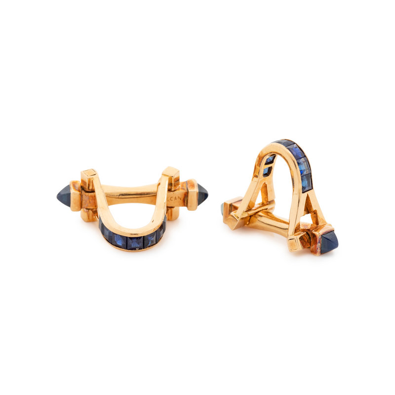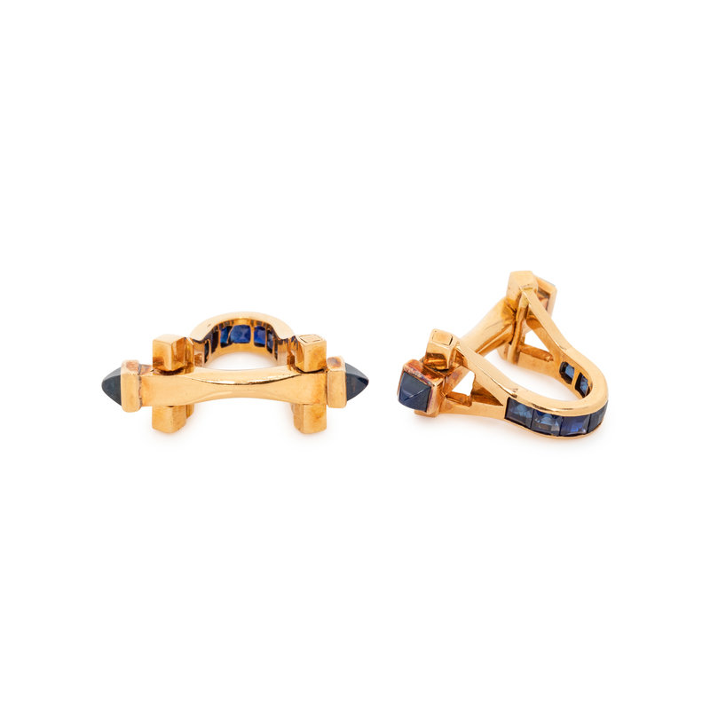 FRENCH, YELLOW GOLD AND SAPPHIRE CUFFLINKS
