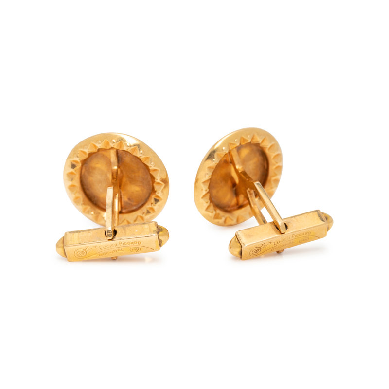 LUCIEN PICCARD, YELLOW GOLD AND RUBY CUFFLINKS