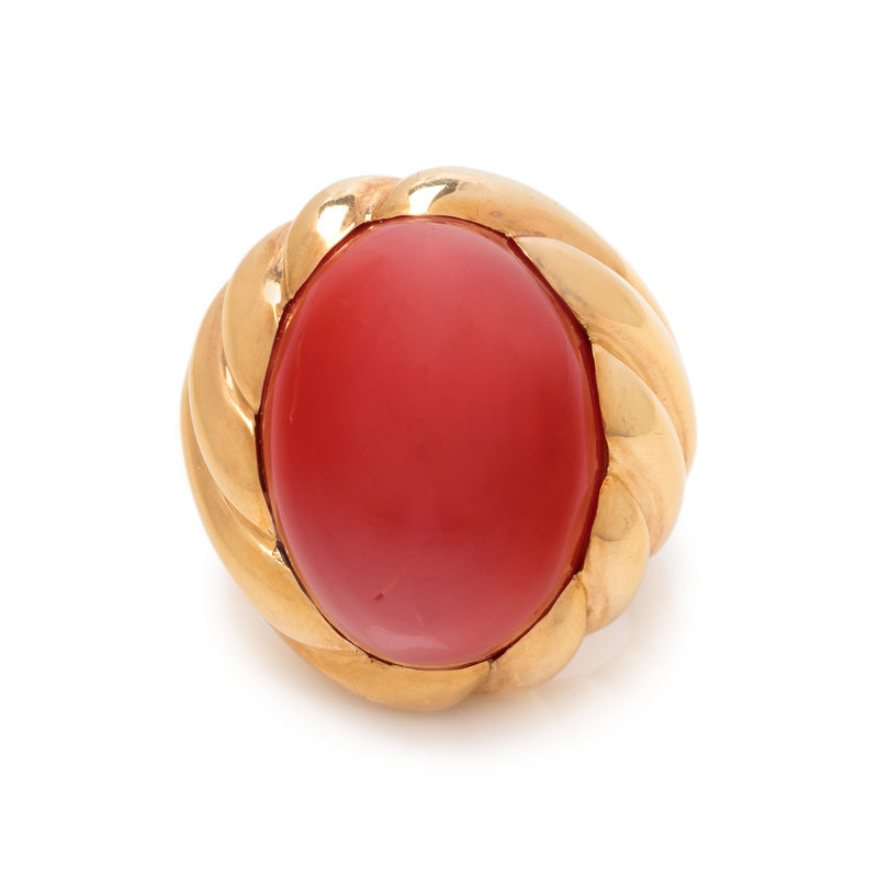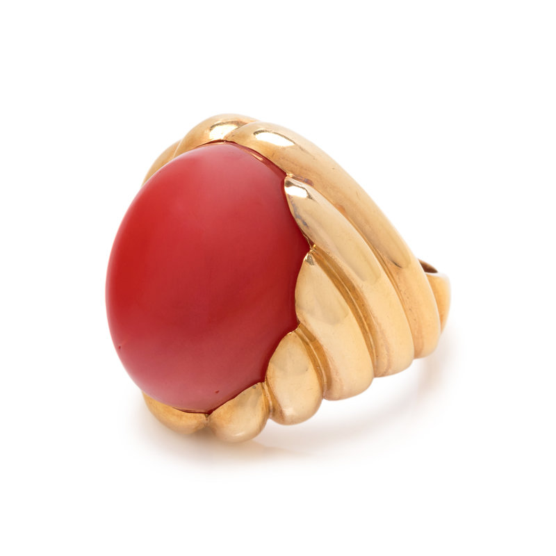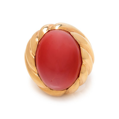 GUMP'S, YELLOW GOLD AND CORAL RING
