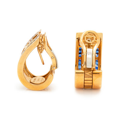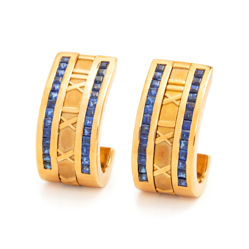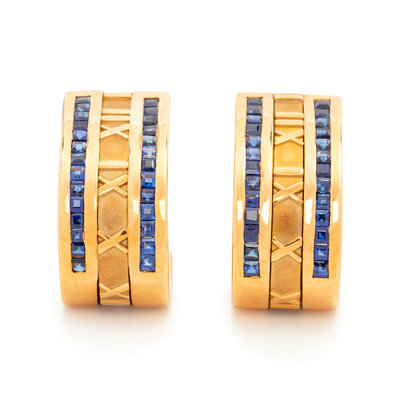 TIFFANY & CO., YELLOW GOLD AND SAPPHIRE 'ATLAS' EARCLIPS