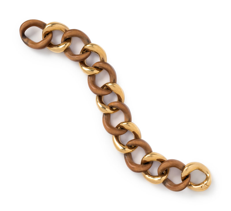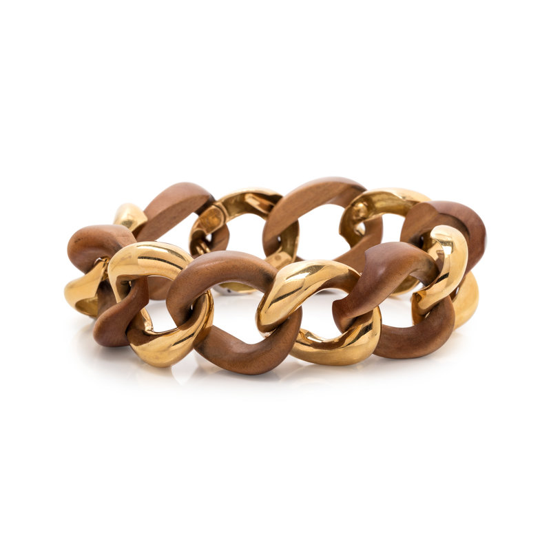 SEAMAN SCHEPPS, YELLOW GOLD AND WOOD BRACELET