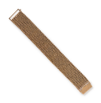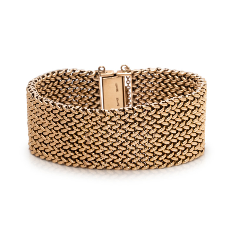 Consisting of a mesh link bracelet measuring approximately 25.00 mm wide. 7 3/8 inches long.