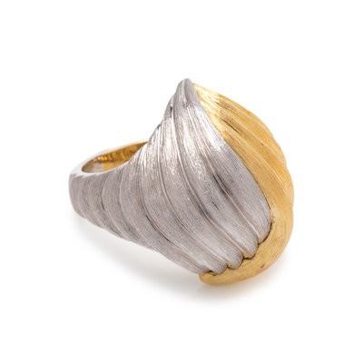 Consisting of a ridged swirl design with 'Sabi' finish. Ring size 7 3/4.