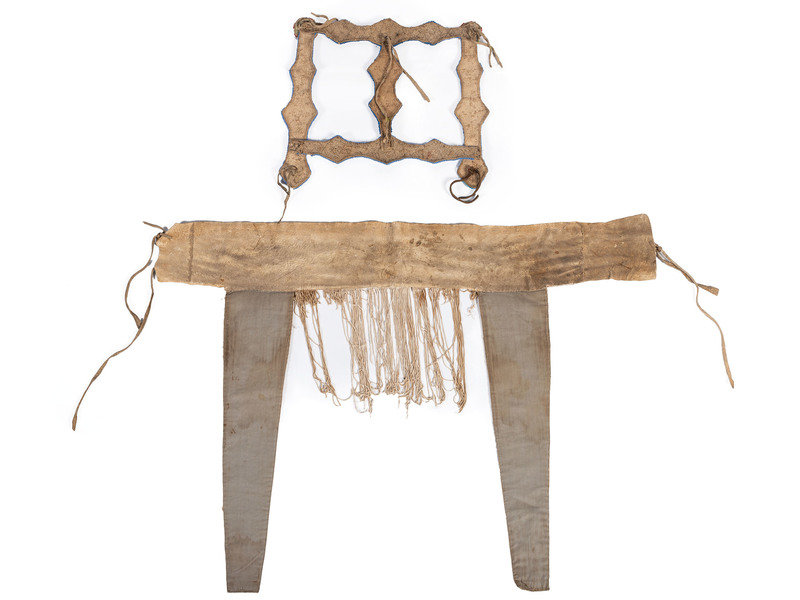 thread-sewn bridle on hide