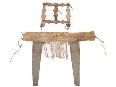 thread-sewn dance belt on canvas and hide