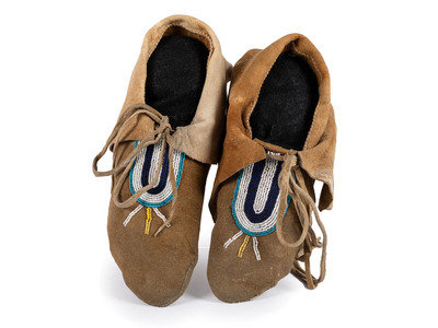 Athapaskan / Plateau Beaded Hide Soft Soled Moccasins, with Side Seam