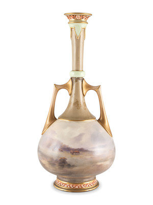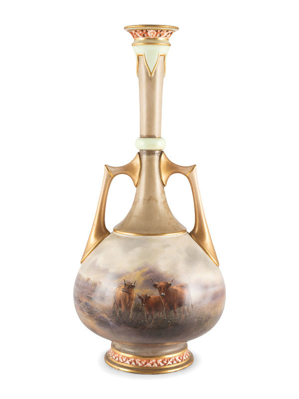 A Royal Worcester "Highland Cattle" Porcelain Vase by John Stinton