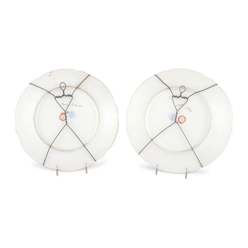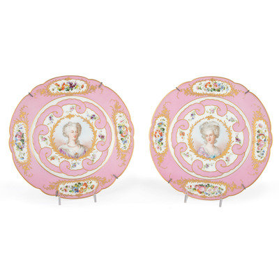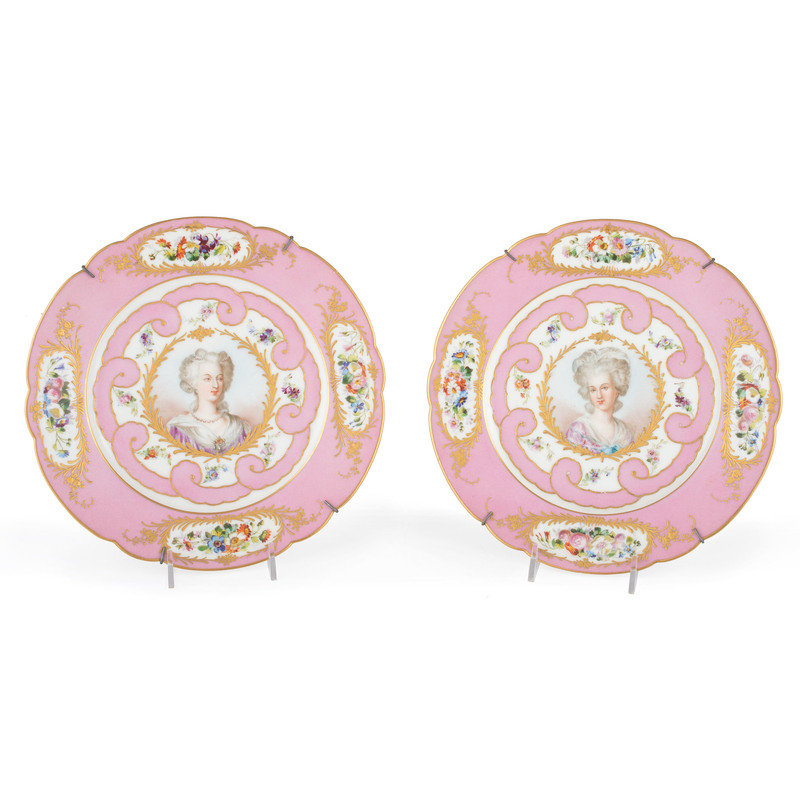 A Pair of Sèvres Parcel Gilt and Polychrome Decorated Marie Antoinette and Mme Necker Plates