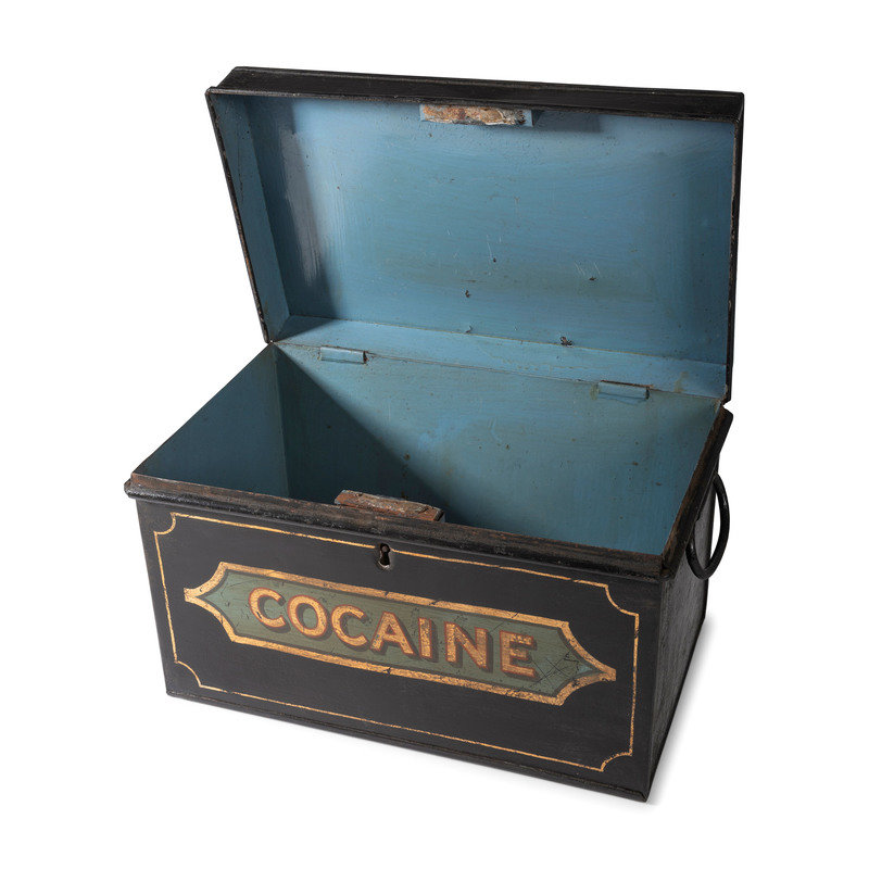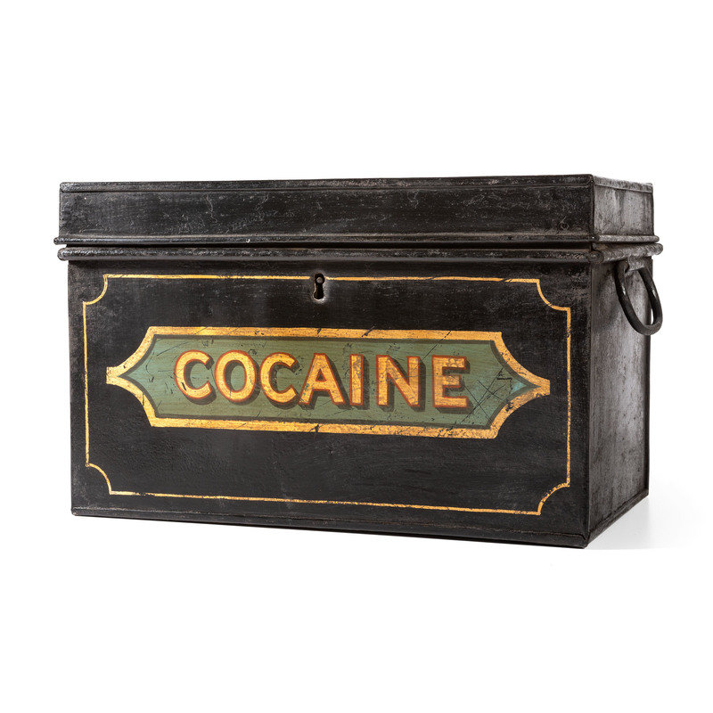A Painted Tin Cocaine Storage Box