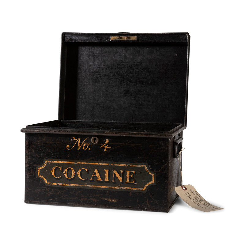 A Painted Tin Cocaine Storage Box