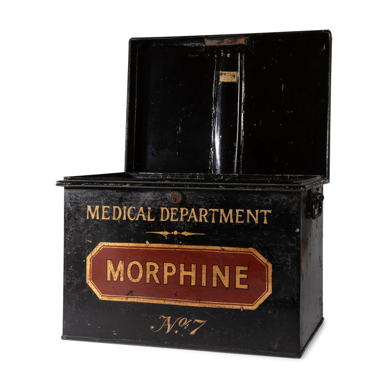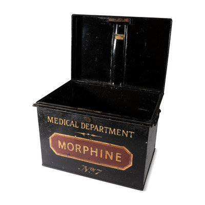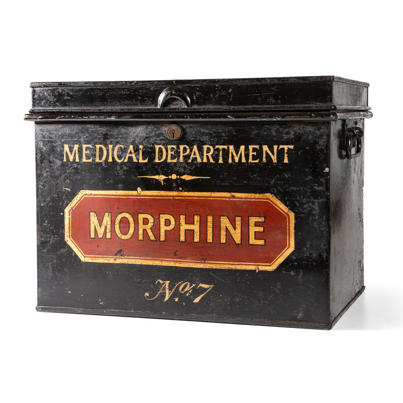 A Painted Tin Morphine Storage Box