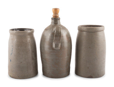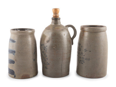 Two Cobalt-Decorated Stoneware Canners and Jug