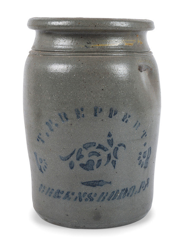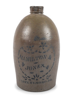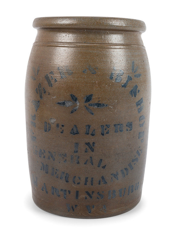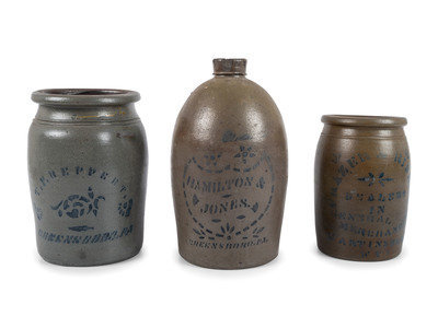 comprising a T.F. Reppert jar, a Hamilton & Jones jug and a West Virginia advertising crock.