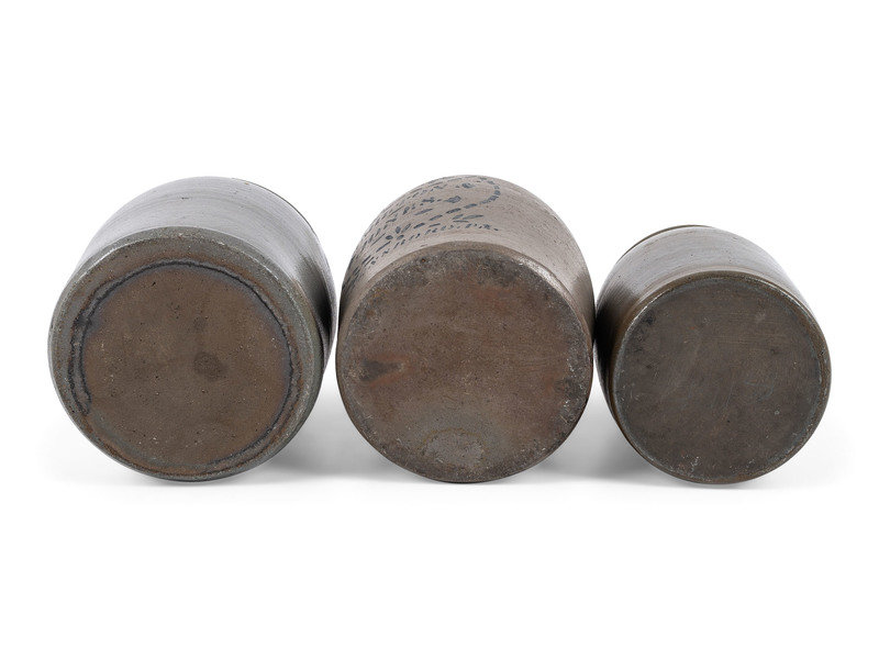 Three Cobalt-Stenciled Stoneware Vessels