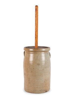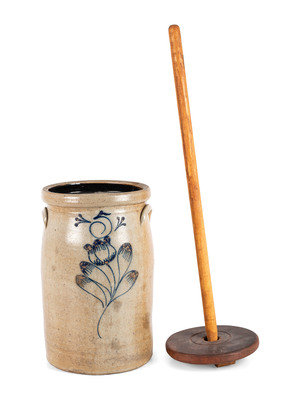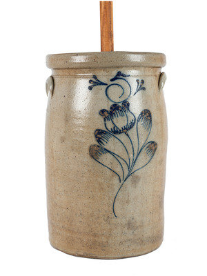 A New York Cobalt-Decorated Five-Gallon Stoneware Churn