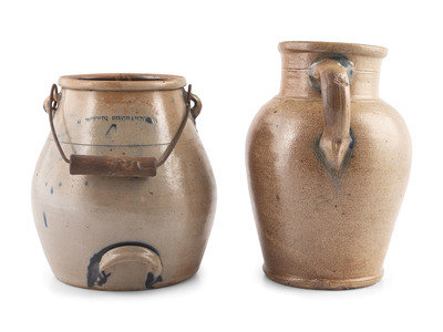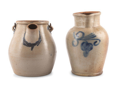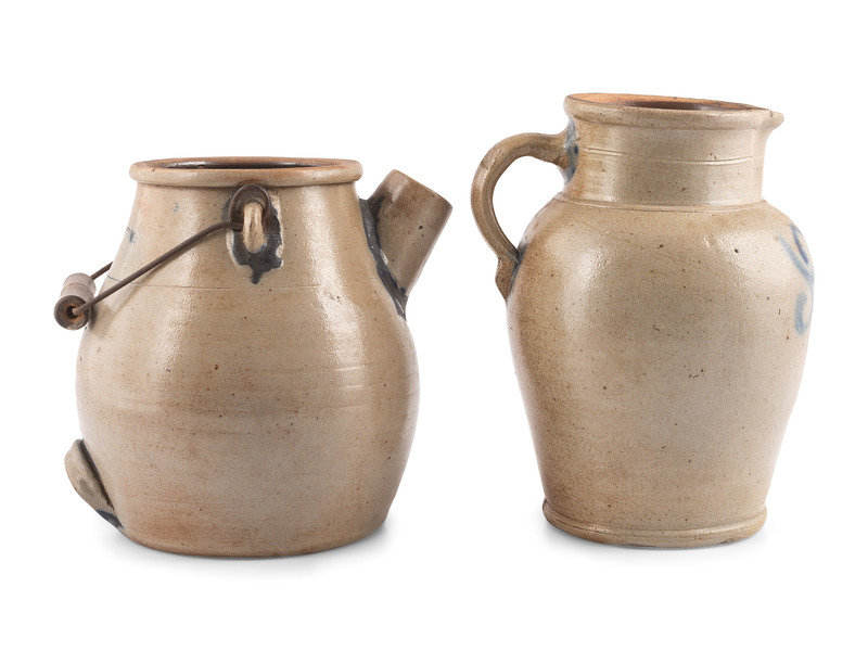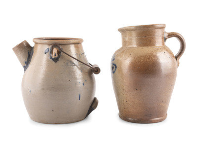 A Cobalt Decorated Stoneware Batter Jug and Pitcher