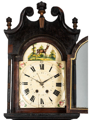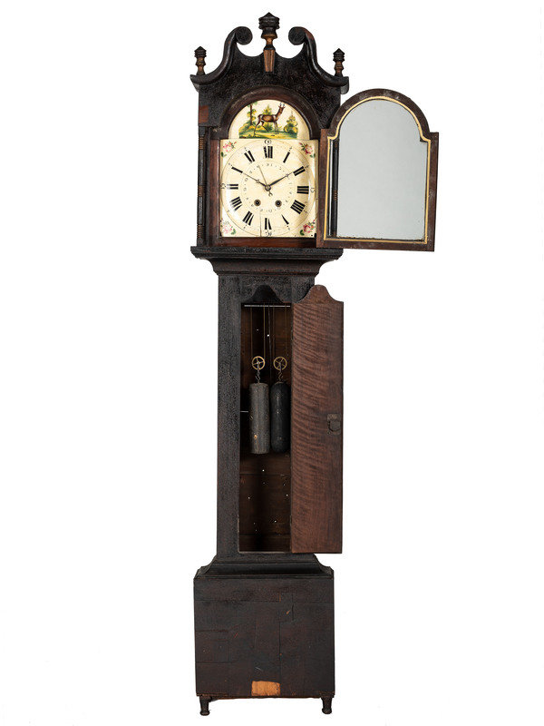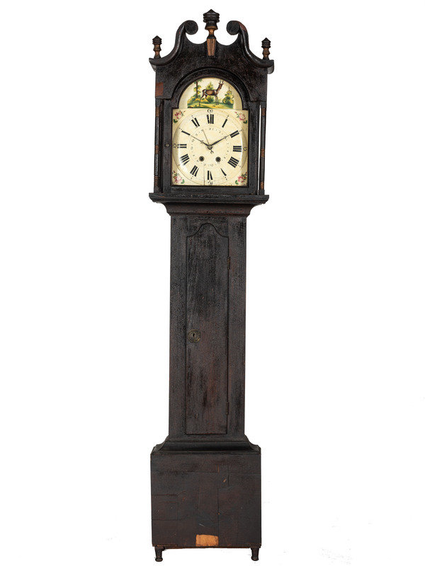 A Classical Black Paint and Parcel Gilt Decorated Tall Case Clock