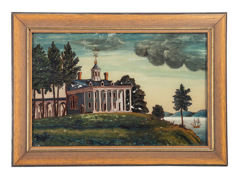 A Mt. Vernon Reverse Painted Glass Panel