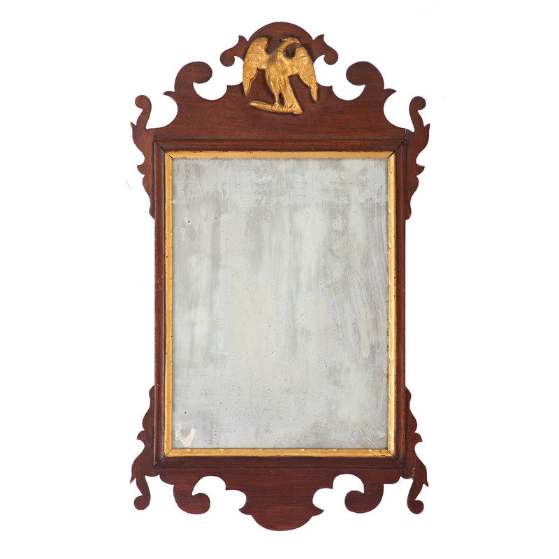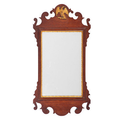 Two Chippendale Carved and Parcel Gilt Mahogany Eagle Decorated Looking Glasses