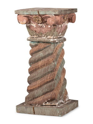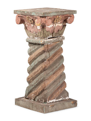A Primitive Painted Wood Spiral-Twist Carved Pedestal