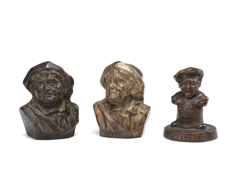 Three Metal Figural Advertising Paperweights
