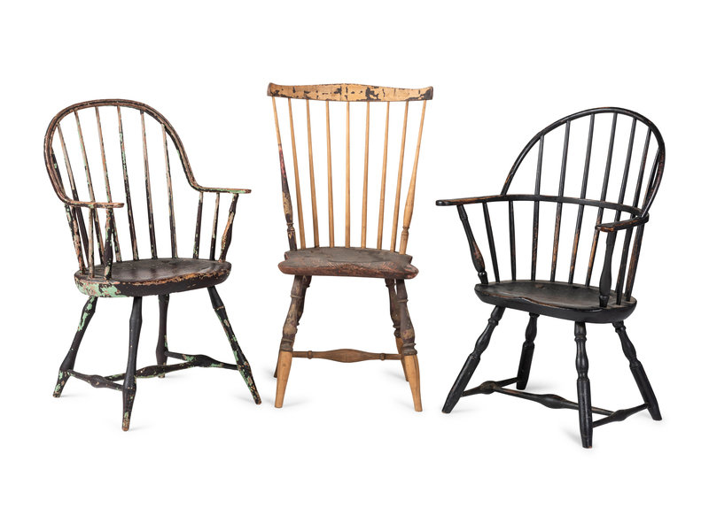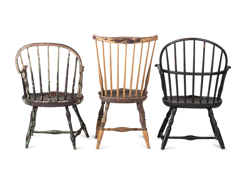 comprising two bow-back armchairs and a comb-back side chair.