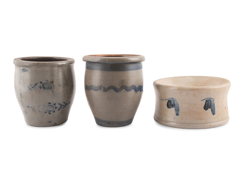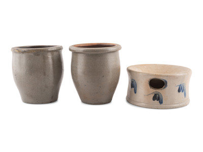 Two Cobalt-Decorated Stoneware Jars and a Spittoon
