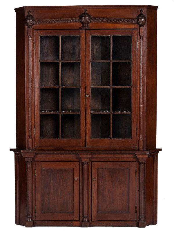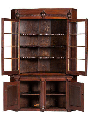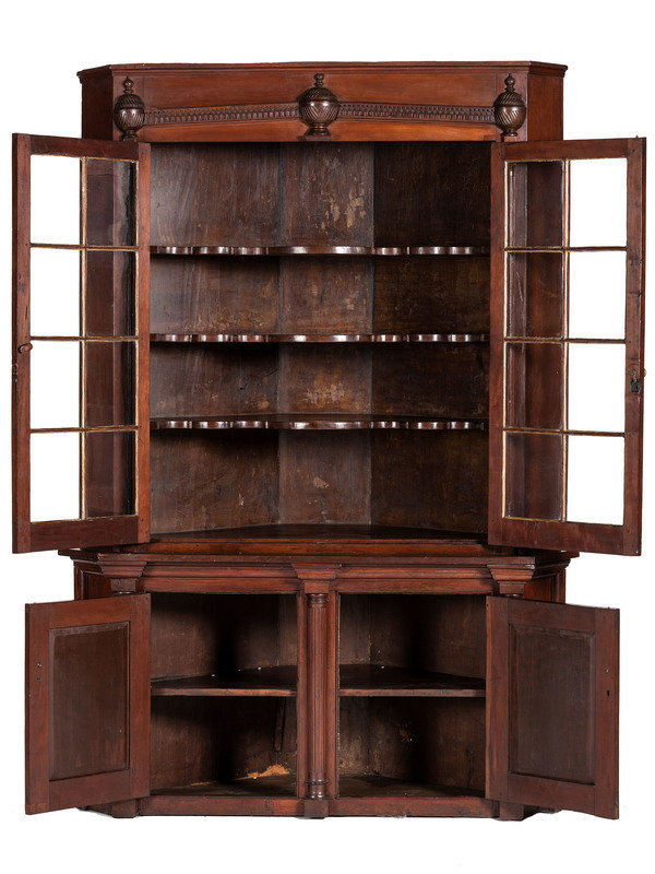 A One-Piece Sheraton Cherry Corner Cupboard