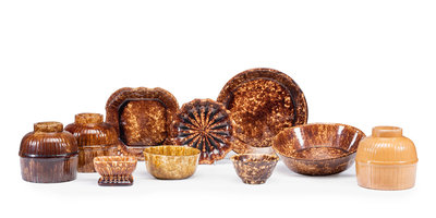 comprising three jars, two bowls, a mold, three dishes, and a soap dish.