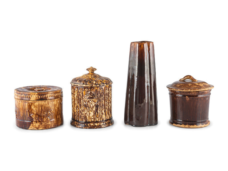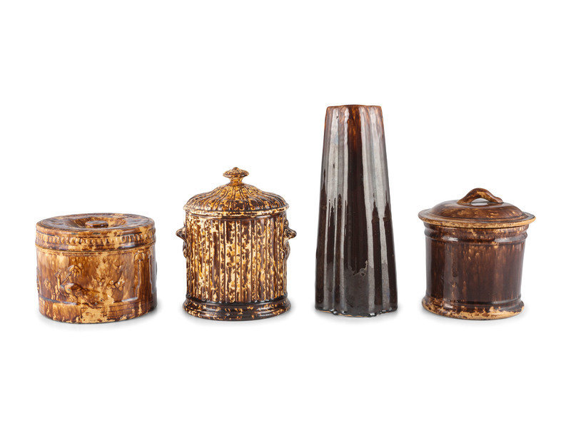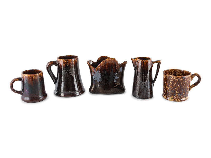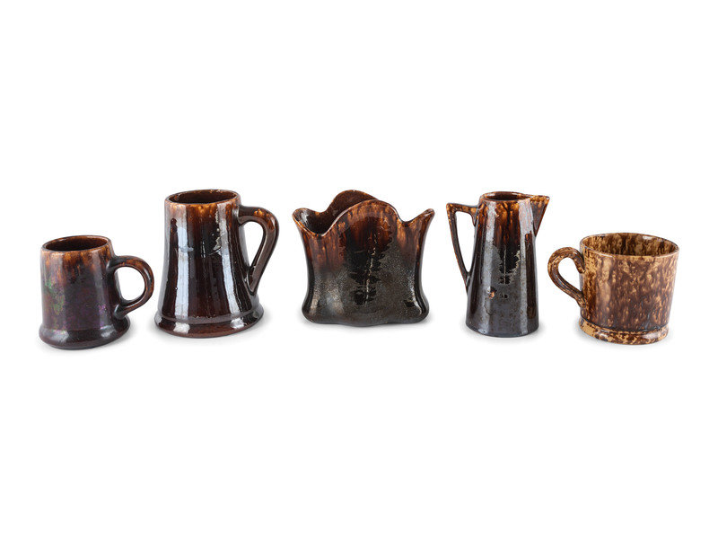 Nine Table Articles in Brown and Bennington Style Glaze